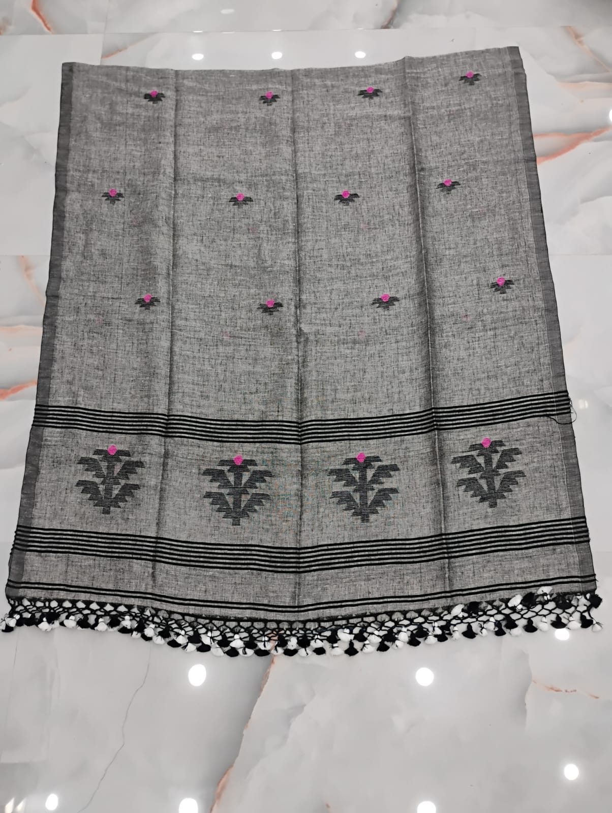 Pure muslin saree handloom grey